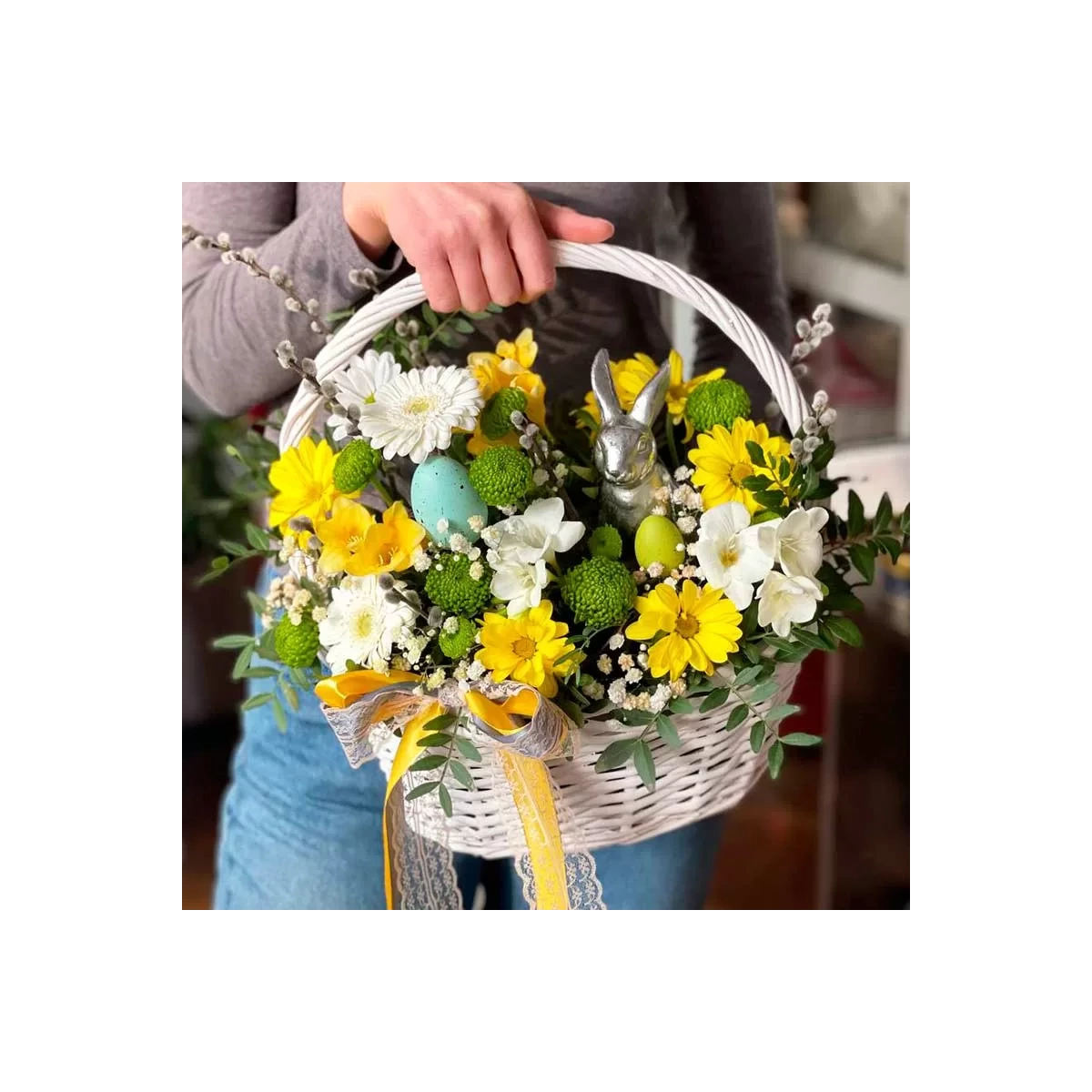 Bright Easter Basket with Flowers