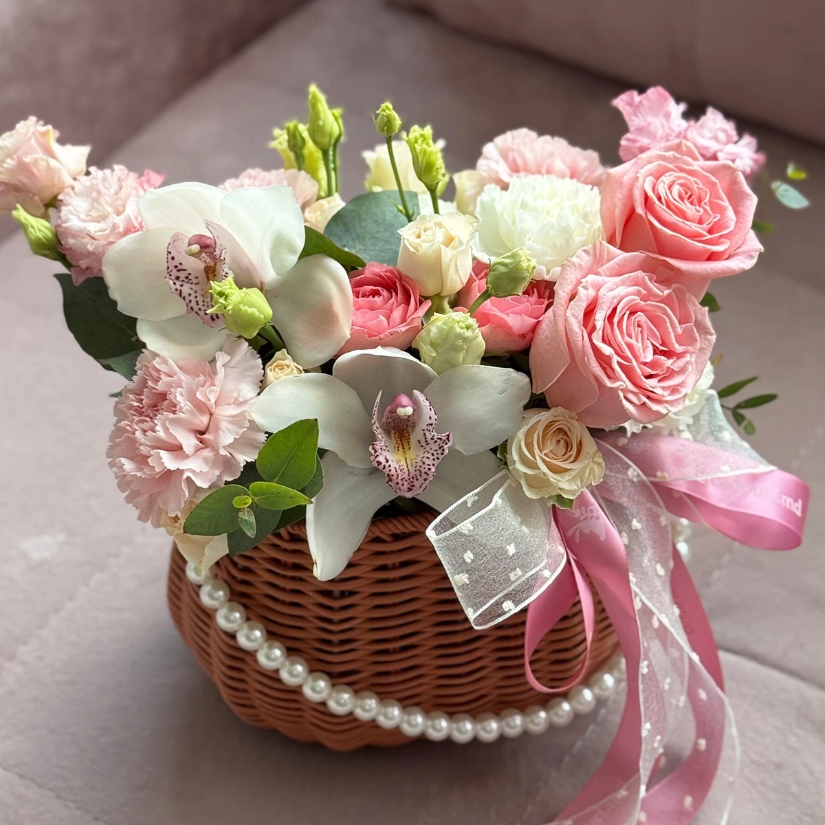 Basket with Flowers "Tenderness Pearls"