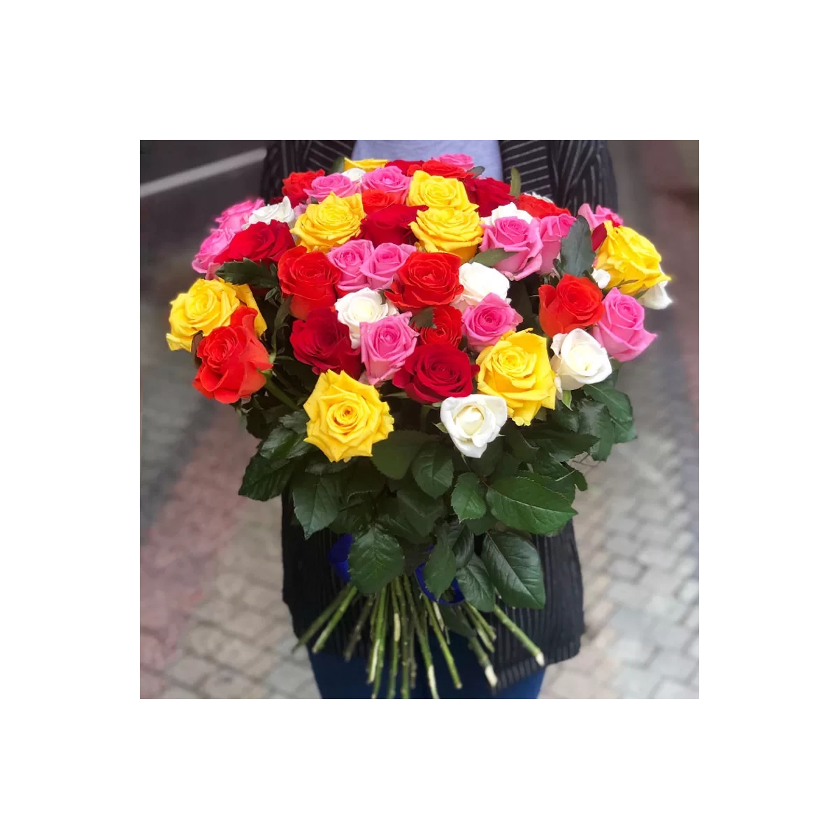 A beautiful bouquet collected of roses of different shades will become a wonderful decoration of your interior. Also it will become a wonderful gift for a woman for any holiday. This bouquet will definitely make her smile!