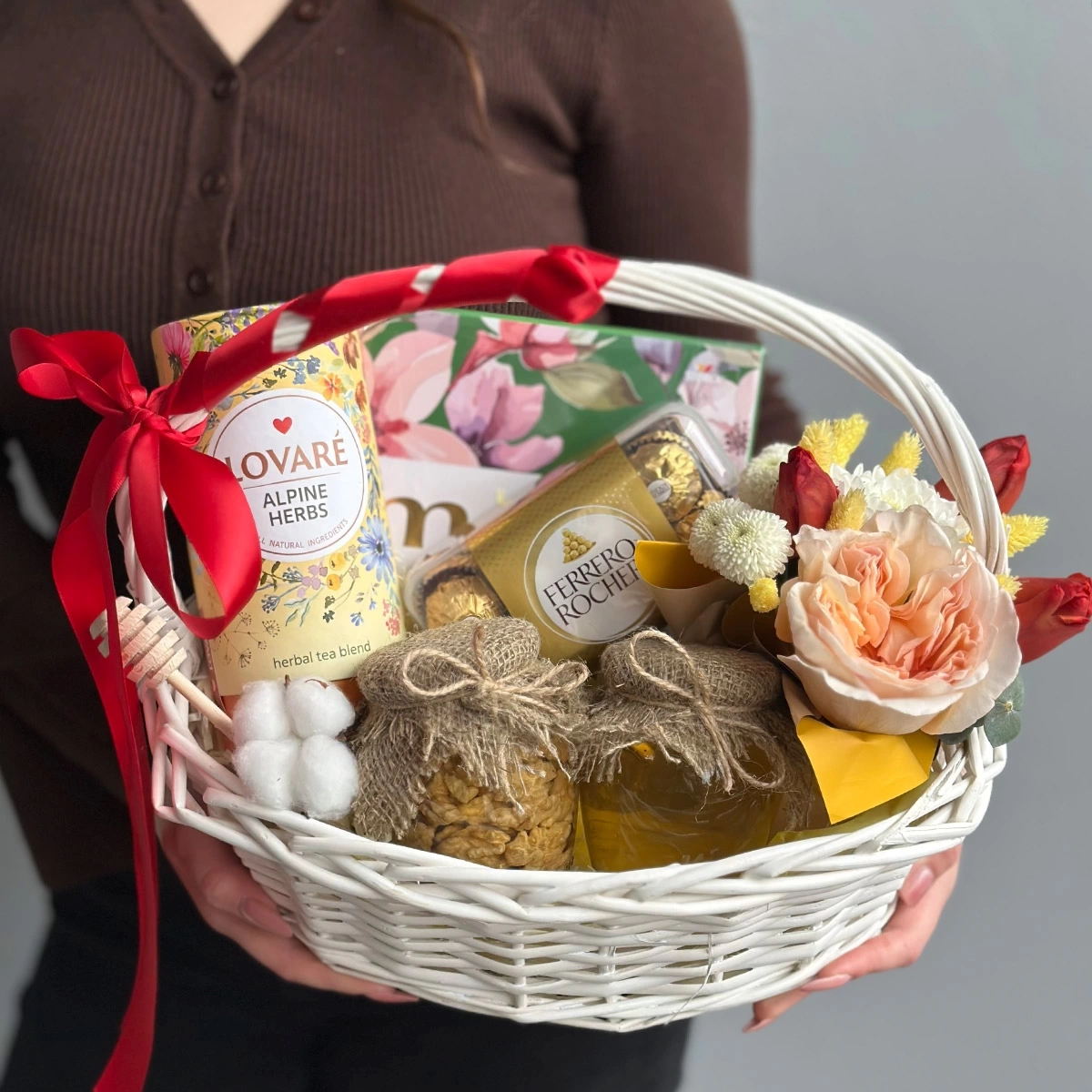 What could be better than waking up on a warm summer morning in a mountain cottage, surrounded by the aroma of alpine herbs and filled with sunlight? To immerse yourself in the dream of mountain meadows, you can simply order the "Alpine Meadow" basket, which includes: