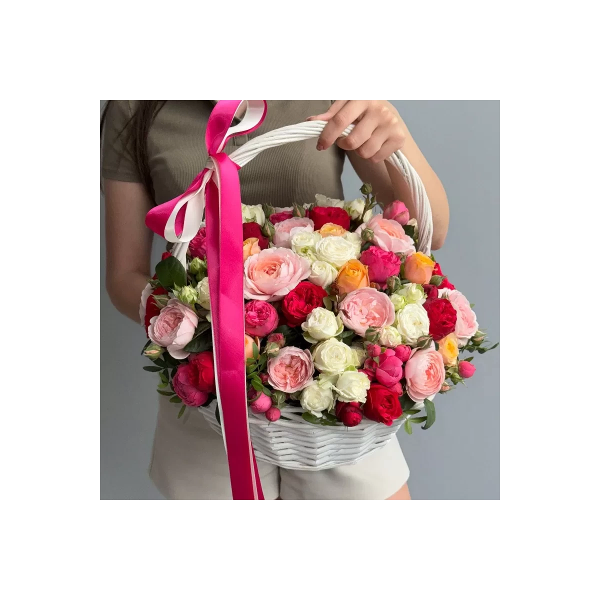Корзина с Разноцветными Розами